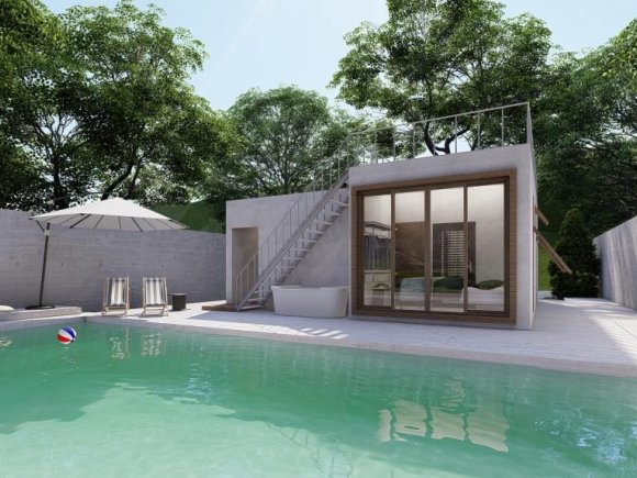 บ้านพัก 1 ห้องนอน 1 ห้องรับแขก 1 ห้องน้ำ 1 ห้องครัว ชั้น 2 ดาดฟ้า ขนาด 27 ตารางเมตร สไตล์โมเดิร์น ดีไซน์สวย มุ่งสู่ความเป็น Eco house เรียบง่าย และชวนผ่อนคลาย มุ่งเน้นไปที่ประโยชน์ใช้สอย เพื่อให้ตอบสนองด้านการใช้งาน ดีไซน์โดดเด่น ลงตัวทุกมุมมอง สัมผัสงานออกแบบอย่างสร้างสรรค์ที่เป็นเอกลักษณ์เฉพาะคุณ บ้านสำเร็จรูป บ้านน็อคดาวน์ KNOCK DOWN